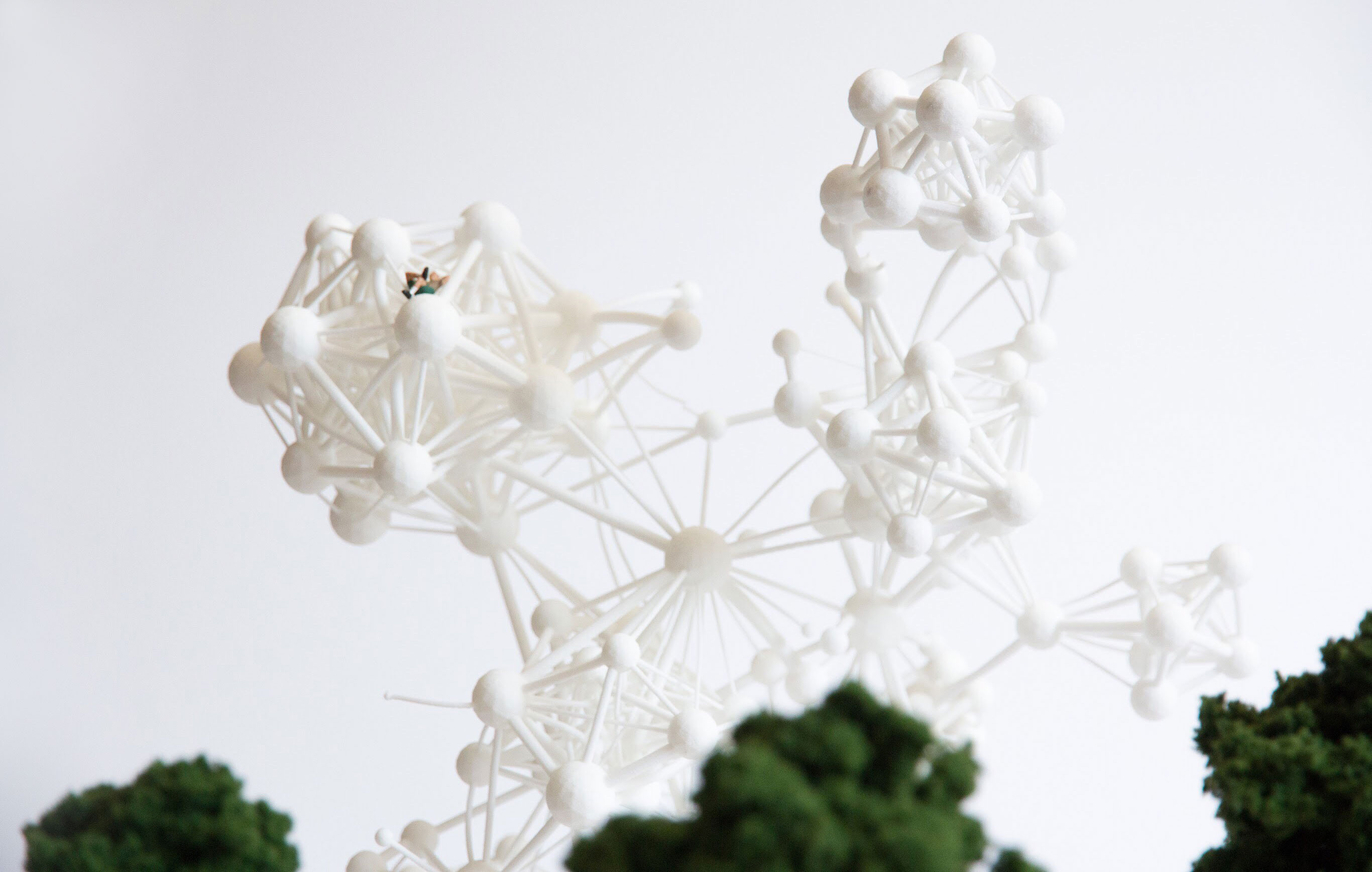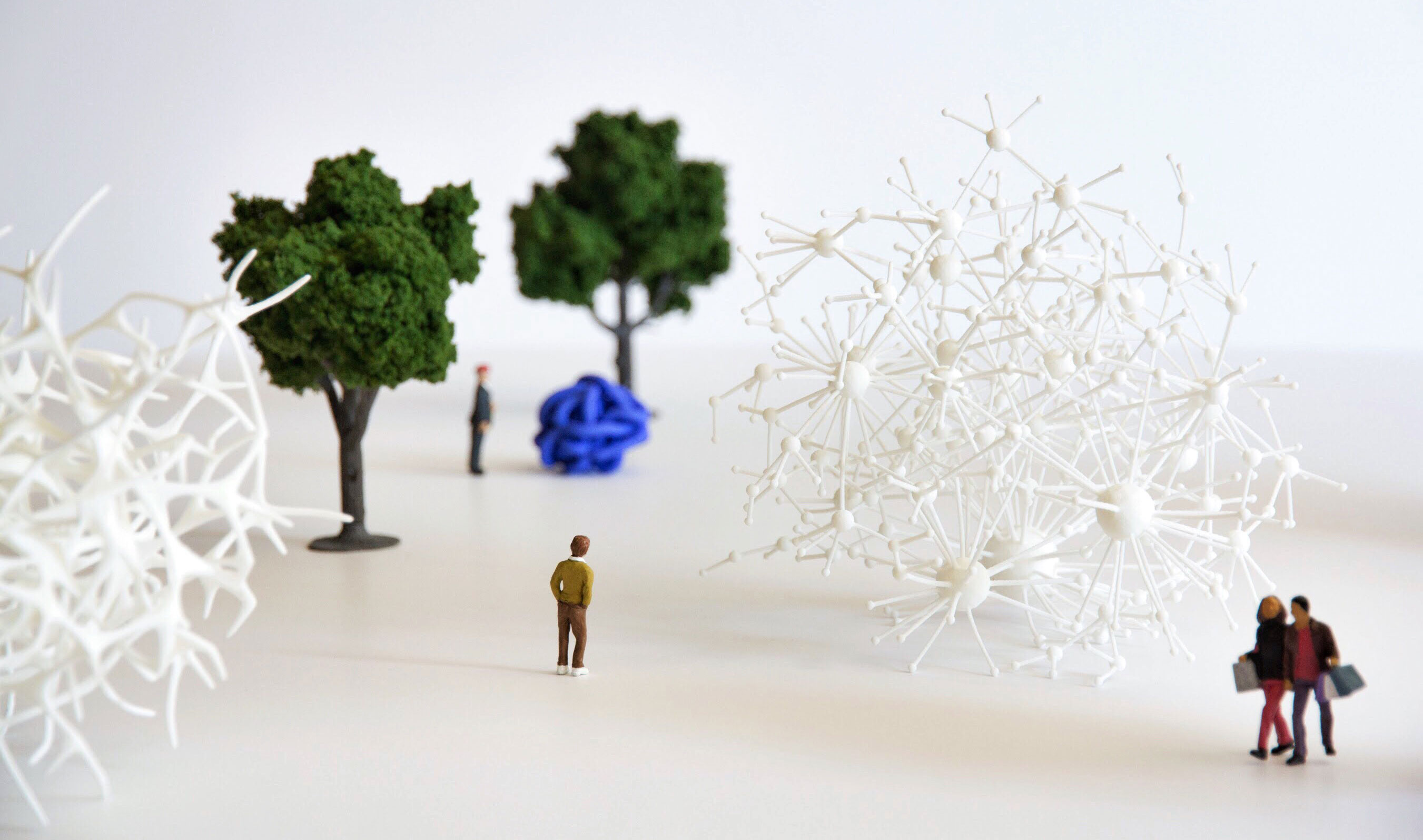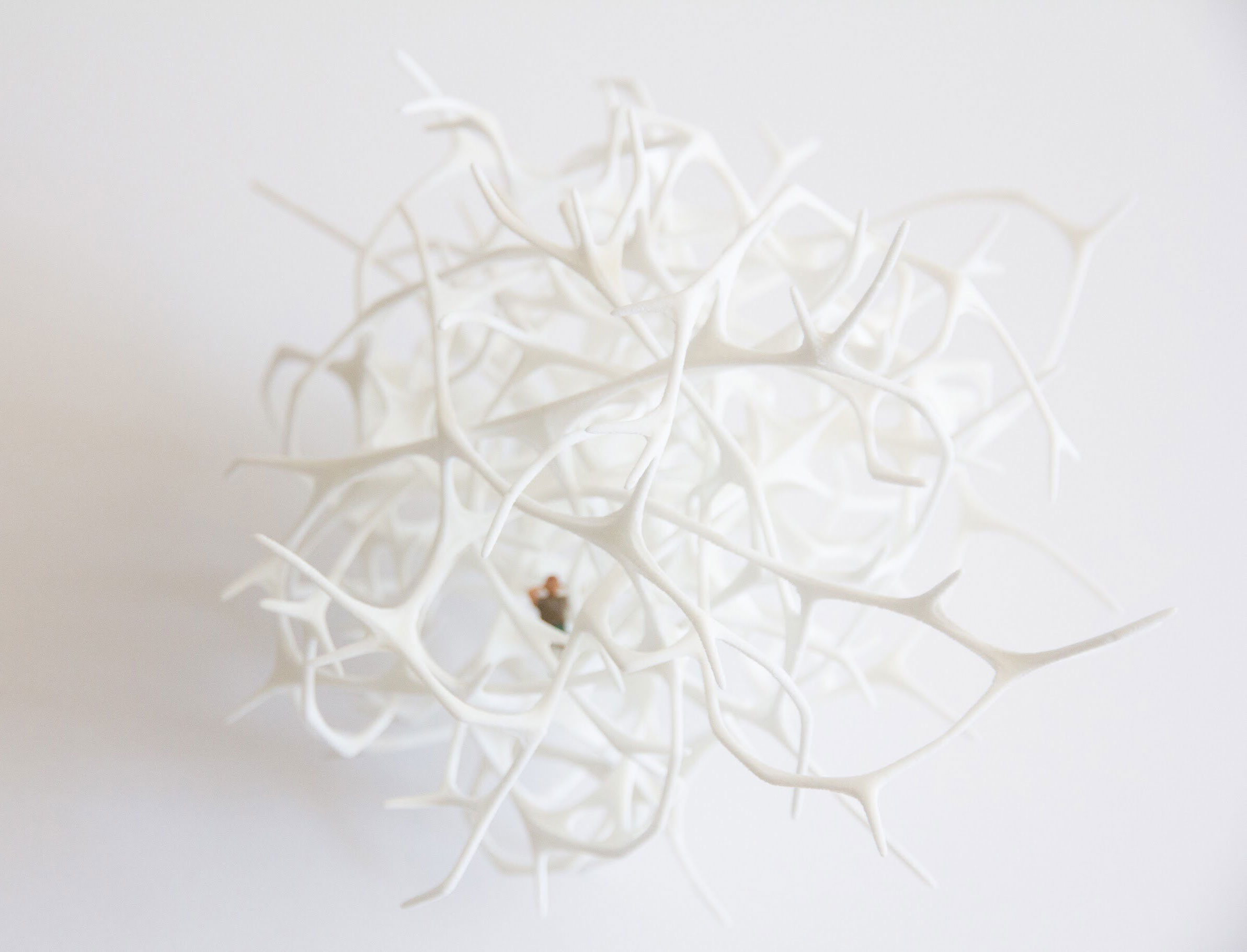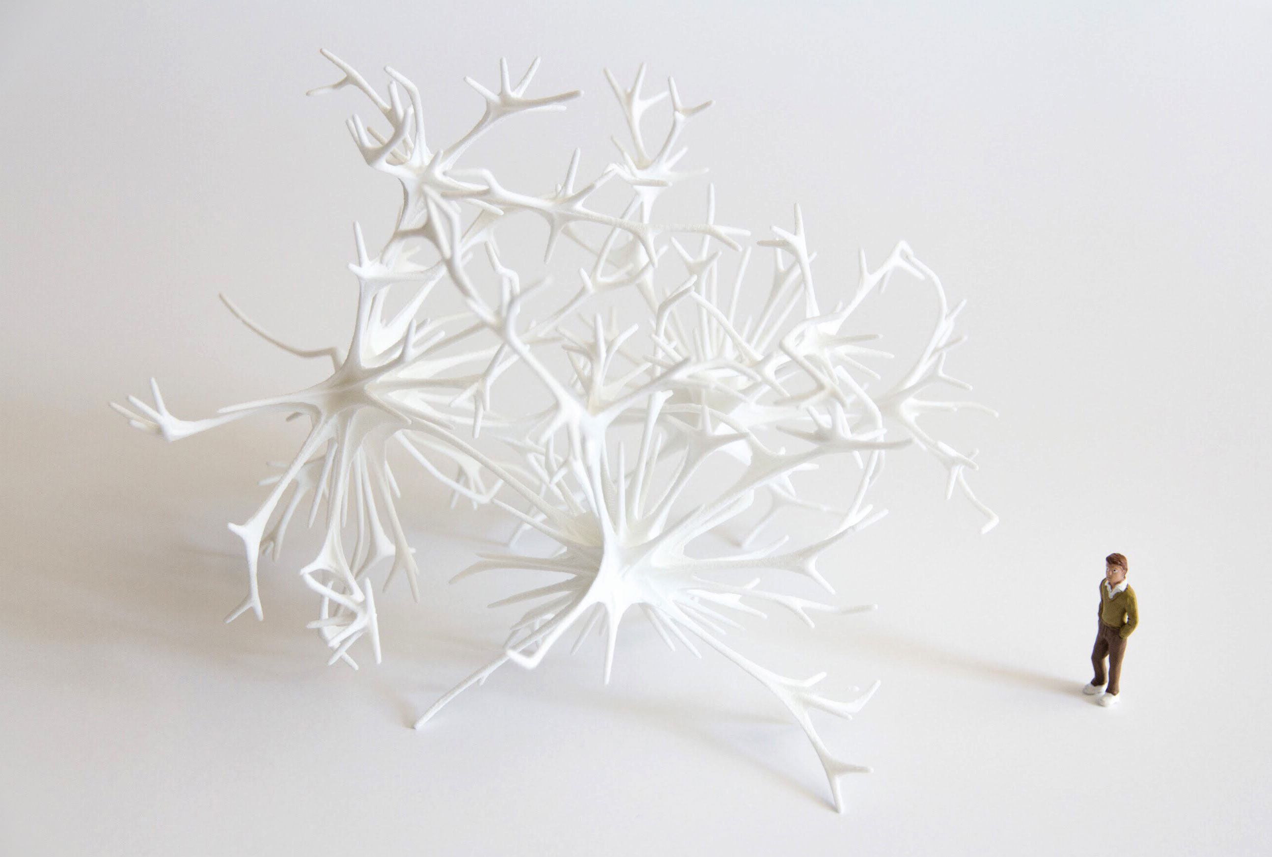 By printing our networks in 3D we can appreciate their scale, the center of gravity, how the volumes interact with the surrounding space, and perceive the movement of their mass. Once the network has been printed, its orientation on a surface is determined by its structural properties. A game of balancing begins, and after several attempts the best position emerges. All these 3D prints start talking to each other, a small village expands print after print, inhabited by Wondernetians.